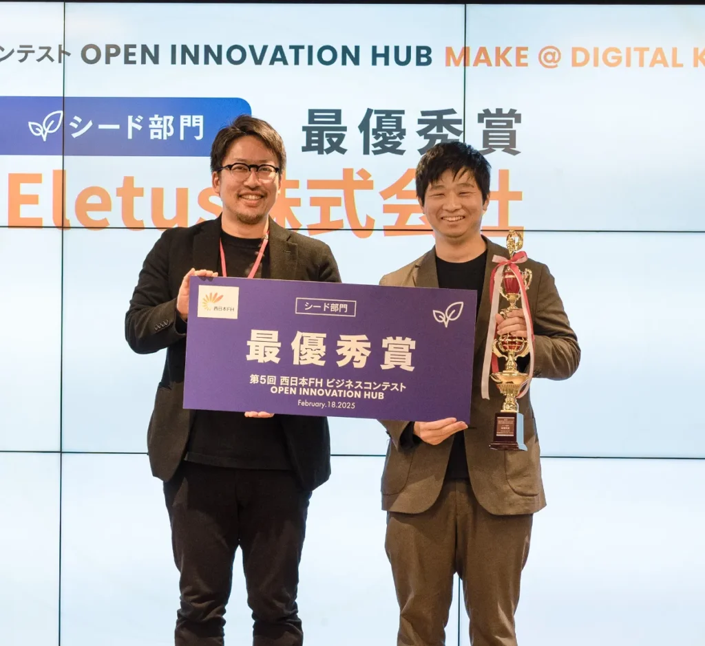 Eletus株式会社(本社:福岡県福岡市、代表取締役:園田 雅敏)は、株式会社西日本フィナンシャルホールディングスが主催するオープンイノベーション・ハブ「OPEN INNOVATION HUB」におけるビジネスコンテスト…